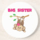 A cute monkey with a pink flower swings by her tail from a branch and pink text reads "Big Sister" on big sister T-shirts, key chains, cards, stickers, tote bags, magnets, mousepads, pillows, and other big sister apparel and gifts!
