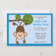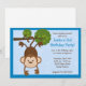 Invite your child's friends to their next birthday party with this customizable blue monkey birthday party Invitation. Features a cute monkey hanging from a tree branch.