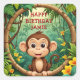 "Monkey Cartoon Party – Custom Text Kids" Square Sticker