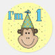 Monkey in Party Hat 1st Birthday Tshirts Classic Round Sticker