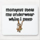 Monkeys steal my underwear while I sleep. Funny and silly humour quote / saying about monkeys.