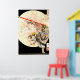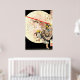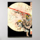 Son Goku, sometimes known as the Monkey King, holding a spiked sceptre and glaring at the Moon Rabbit, who apparently lives on the moon. A page of the series, Tsuki Hyaku Shi (100 Aspects of the Moon). From an original 19th century (1887) woodcut, Tamausagi Songoku (Songoku and Jewel Hare), by Taiso Yoshitoshi. All Rights Reserved © 2012 padre art