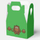 Party favour box shown in green in a gable style with a cute cartoon monkey. Customize this item and add your own text or buy as is and add some pretty ribbon.