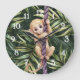 Monkey Purple Rope Green Leaves Large Clock