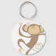Kids will love this cute round keychain which features an illustration of a smiling, waving, little brown monkey.