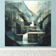 Elevate your space with this monochromatic abstract mountain landscape featuring cascading waterfalls and bold geometric layers. The tranquil palette of muted greens and soft greys creates a serene yet dynamic composition, blending nature’s beauty with modern abstraction. Bare trees and distant mountain peaks add depth and harmony, making this artwork perfect for contemporary, minimalist, or nature-inspired interiors. A stunning choice for art lovers seeking a unique and calming design.