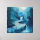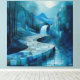 Monochromatic Blue Abstract Waterfall Landscape Canvas Print