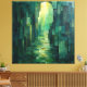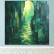 Create a serene ambiance with this captivating monochromatic green abstract artwork. Featuring a luminous pathway leading through a bold geometric archway, this piece blends natural light with layered textures in rich green tones. The harmonious interplay of structured shapes and glowing highlights evokes a sense of depth and tranquillity, making it perfect for modern, minimalist, or nature-inspired interiors. Ideal for art lovers seeking a unique fusion of abstraction and natural elegance for their space.
