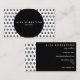 A professional design featuring a simple pattern of black paw prints on a white background with a large black circle in the middle for your name and profession. This would be suitable for anyone who works with pets or animals including vets, pet groomers, dog walkers and pet sitters.