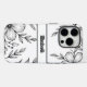 This premium mobile device protector features an elegant monochrome botanical line art design. Intricate hand-drawn flowers, leaves, and stems are rendered in crisp black outlines on a pristine white background, creating a classic and sophisticated patterned aesthetic. Personalize this unique smartphone accessory with a name like "Elizabeth" on the modern grey customization bar; you can easily remove the name and any other elements you don't like from within the design tool, crafting your perfect bespoke mobile phone protector.