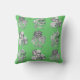 Monochrome flowers on green background throw pillow