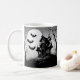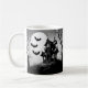 Embrace the spookiness with this stylish Black and White Haunted House Mug! Featuring a dramatic black manor on a hill, a ghostly Full Moon, and a trio of flying bats. This monochrome coffee cup is perfect for gothic decor, minimalist Halloween vibes, or any fan of classic horror art