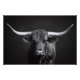 A striking monochrome artwork of a longhorn steer, evoking the timeless spirit of the American West.