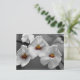 Beautiful white orchids with vibrant yellow and red centre converted to black and white with the centre colours painted back in. One of a kind card to send to anyone. Photo by T.Dashfield