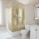 Custom monogram metallic faux foil gradient with double simulated dripping glitter graphics (top and dottom) bathroom shower curtain. easily personalize this bath curtain by adding your name and last initial with zazzle's easy to use personalization tool.