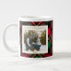 Monogram 2 Photo Rustic Green Red Plaid Christmas Large Coffee Mug