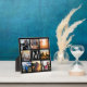 monogrammed new gothic light font 8 frame picture collage table top plaque with easel: customize with pictures (squared and recipient's initial. Makes a great gift for anyone on any occasion.