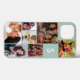 Personalize the phone cover with your favourite photos, easily can fit the photo to the area.8 photo collage iPhone 13 Case in saga green background . you can change the background colour from edit design tool.