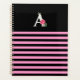 Monogram A in White Pink Rose and Leaves Stripes Planner