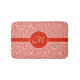 Monogram Abstract Red Roses Bath Mat. A geometric and abstract red roses repeating pattern. You can customize the background colour if you like. I used white to give a nice contrast. The design also features a red and white horizontal band, and a red and white circle containing your own customizable monogram letter in fancy typography. Just hit the Personalize link to make your edits.