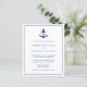 Nautical themed budget wedding invitations featuring a navy blue anchor with your monogram on either side and your event details surrounded by a border, over a white background. The backside is a matching shade of navy blue. A simple yet elegant design that is perfect for a beach wedding in the summer. These cheap wedding invitations are printed on sheets of paper for a budget friendly option.