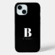 Simple minimalist initial letter and name personalized solid black and white phone case.