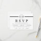 This elegant wedding RSVP card features a sophisticated monogram and stripe design. The upper part of the card displays a stylish stripe, adorned with a circle that showcases your initials. Adding a touch of romance, two delicate hearts are elegantly placed within the design. The lower part of the card is reserved for your personalized text, allowing you to provide all the necessary details for your guests. This elegant and timeless design is perfect for couples seeking a classic and refined aesthetic for their wedding stationery.