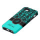 Modern monogrammed turquoise blue, black and white damask with white chequered board accents Case-Mate Vibe™ iPhone 5 case can be customized with your logo, name, initial, or other text. If you need assistance, email niteowlstudio@gmail.com.