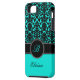 Monogram Aqua, Black, White Damask iPhone 5 Case