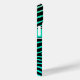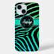 This modern and chic black zebra striped iPhone 15 case has a background colour gradient from green to aquamarine with an aquamarine, black, and white band across the middle with a black and aqua circle on top that has template text for you to personalize with your name in white over your monogram or initial in turquoise. It's perfect for the fun-loving young woman with a style all her own. If you need assistance, email niteowlstudio@gmail.com.