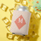 Monogram Art Deco Orange Geometric Greek Pattern Can Cooler