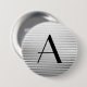 Monogram Art Deco Silver Satin Stripes 3 Inch Round Button