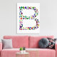 The LETTER 'B' made with pictures of Gemstones in All shapes and colours, such as: oval Sapphire, Heart shaped Emerald, Ruby, Diamonds, and more...