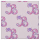 Pretty whimsical letter B hand drawing graphic with shades of pink and purple with navy dark blue outline on a light pink background. Background colour can be changed to your own colour choice if required. Personalized with your own initial this fabric pattern reads B, ideal for customized sewing projects. © Original drawing art and design by Sarah Trett. www.sarahtrett.com for www.mylittleeden.com