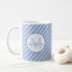 Personalized baby boy monogram mug. Perfect baby shower or the first boy's birthday gift idea. Traditional pastel baby blue and white colour combo. Custom initial and name surrounded by the stars and stripes on the front side. Add the name and initial with easy to use Zazzle editing tool! Visit the shop to see all the collection. There are stickers, blankets, pillows, baby bibs and so much more available.