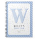 Personalized monogram baby boy Memory Journal. Custom initial and name surrounded by the stars on the front side. Perfect baby shower gift idea. Classical stripes and cute little stars combined with traditional pastel baby blue and white colour combo. Add the name, monogram and year with easy to use Zazzle editing tool! Visit the shop to see all the collection. There are banners, buntings, favour boxes, water bottles, bodysuits and so much more available. And of course, sanitisers and masks are also in the shop!