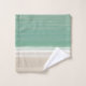 A modern watercolor ocean scene with turquoise sea and sandy beach bath towel set with space for your initials.