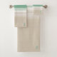 Une scène marine moderne avec mer turquoise et serviette de bain de plage de sable fin ensemble avec de l'espace pour vos initiales.