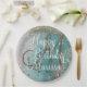 Monogram Birthday Gold Stars on Teal Paper Plate