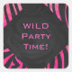 Monogram Black and Hot Pink Zebra Design Square Sticker