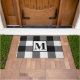 Monogram Black and White Buffalo Plaid Christmas Doormat