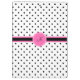 Monogrammed black and white polka dot with hot pink accent clipboard. A black on white polka dot pattern, a black band with a hot pink border and a a hot pink circle in the middle with your custom letter. The letter can be changed.