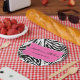 Monogrammed black and white zebra pattern wedding paper plates with hot pink accent.