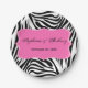 Monogram Black and White Zebra Print and Hot Pink Paper Plate