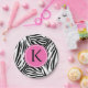 Monogrammed black and white zebra pattern. A hot pink circle where you can put your initial.