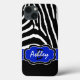 Monogrammed modern black, white and blue zebra print striped pattern Case-Mate Barely There™ iPad Air case can be customized with your logo, name, initials, or other text. If you need assistance, email niteowlstudio@gmail.com.