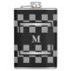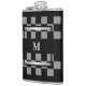 Masculine Black Checkered Personalized Monogrammed Hip Flask.