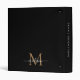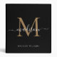 Elegant Monogram Gold Black White Script Name Home Office Professional Work Back to School Recipe 3 ring binder