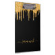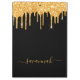 Girly and glamourous. A chic black background with faux gold glitter drips, paint dripping look. Personalize and add a name. The name is written with a modern and trendy hand lettered style script with swashes. Golden coloured letters.