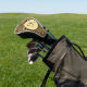 Monogrammed Black and gold leopard print, animal print, cheetah print golf head cover and putter cover. See our collection for matching products.